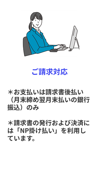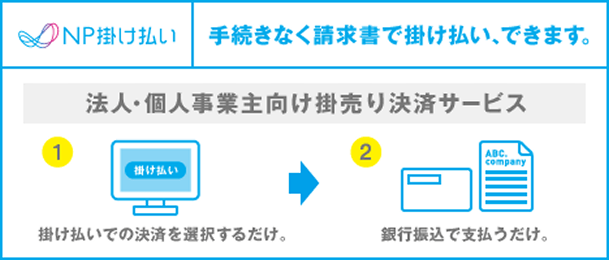 法人/個人事業主を対象とした掛け払いサービスです。(月末締め翌月末請求書払い)