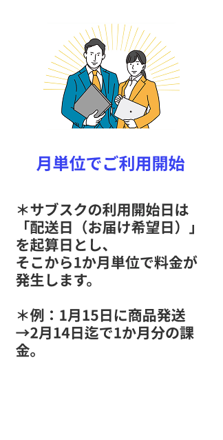 サブスクの利用開始日は「配送日(お届け希望日)」を起算日とし、そこから1か月単位で料金が発生します。