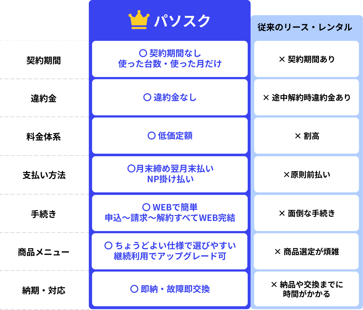 パソスク vs 従来のリース・レンタル