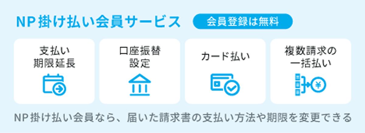 掛け払いのご注文には、同社の提供するNP掛け払いサービスが適用され、ご注文と同時にご注文の商品の代金債権を譲渡します。